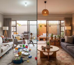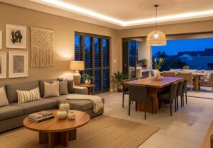 After adopting the Curation Principle, Lerato made a bold decision. She invested in one magnificent, locally handcrafted timber cabinet for her lounge. This wasn’t just a storage unit; it was a piece with soul that celebrated South African artistry. Around this anchor, other elements naturally fell into place. Her lounge transformed into a sanctuary that felt elegant even during those inevitable hours of darkness.