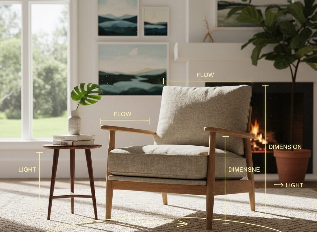 Once the human need and the quality of the piece are established, the focus shifts outward to the environment. This involves analysing the floor plan, natural light, and walking paths to identify design friction.