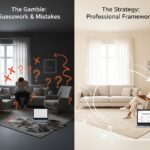 This common experience is often referred to as the showroom trap. It occurs when individual items are selected in isolation without a clear plan for how those pieces will actually function within the unique constraints of a specific home. To avoid this, you need a simple space planning strategy before you start shopping.”.